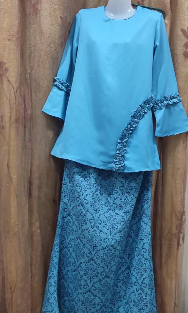 Baju Kurung Moden Labuh 2020 Azzara Turkois 2 Saeeda Collections